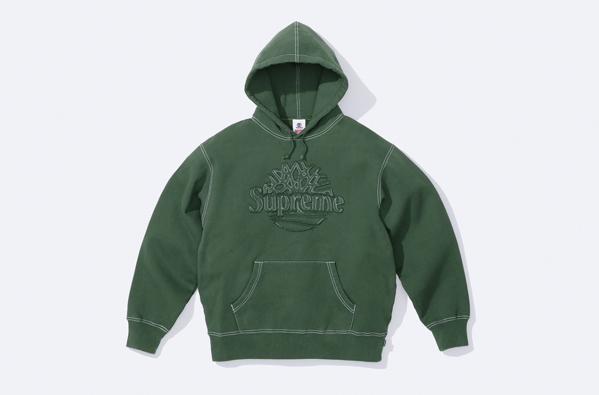 지난 12월 협업 풋웨어를 공개한 데 이어 슈프림과 팀버랜드가 협업 의류를 공개했다. 후디, 스웻팬츠, 반팔 야구 저지로 구성된 협업은 그린, 레드, 블랙 컬러가 주로 사용됐다. 후디와 스웨트팬츠에는 화이트 컬러의 스티칭 디테일과 팀버랜드의 로고와 겹쳐진 ‘Supreme’ 임브로이더리 디자인이 공통적으로 적용됐다. 면 소재의 반팔 야구 저지 전면과 후면엔 각각 슈프림의 레터링과 팀버랜드의 로고가 그려졌다.